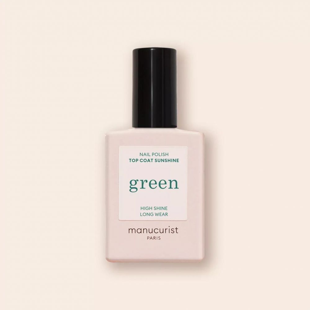 Le Top Coat Sunshine apporte une tenue et une brillance exceptionnelle pour un « effet gel » sans lampe. Sa formule réagit aux UV naturels et accélère le temps de séchage de votre vernis Green. Ce Top Coat extraordinaire est la dernière étape pour une manucure protégée, sublimée, et une tenue prolongée. Son petit + : avec lui votre manucure résiste à tout, même au gel hydro-alcoolique. ✨ NEW : notre Top Coat Sunshine fait peau neuve avec un beau flacon rose pour une meilleure cohésion avec notre gamme Green™ ! Sa super formule reste inchangée.