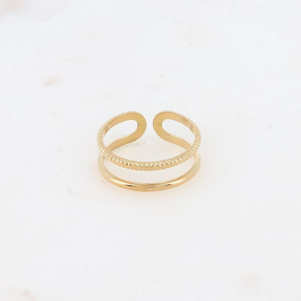 Bague en acier inoxydable composée de deux rangs, l’une striée et l’autre lisse.