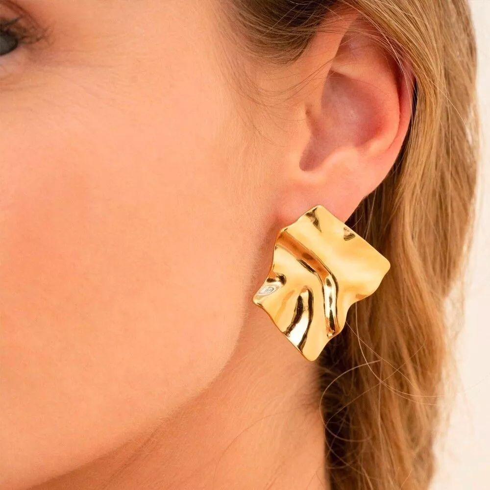 Boucles d’oreilles à puce en acier inoxydable composées d’un carré effet froissé.