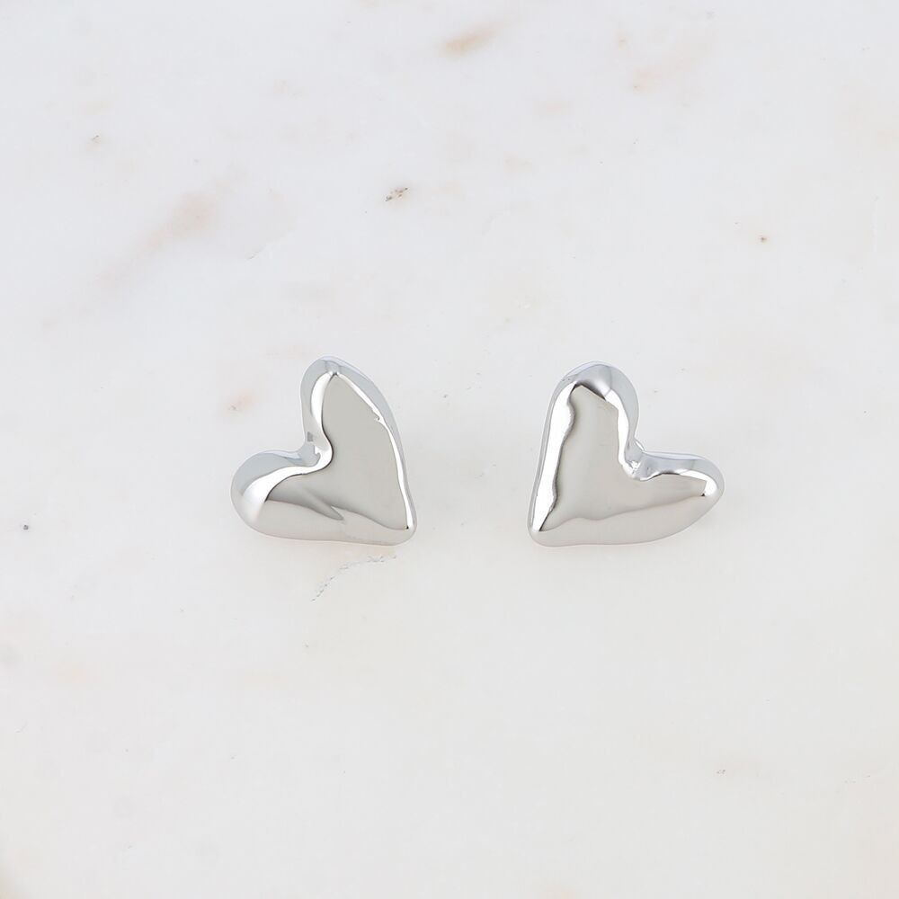 Boucles d’oreilles à puce en acier inoxydable composées d’un coeur martelé.