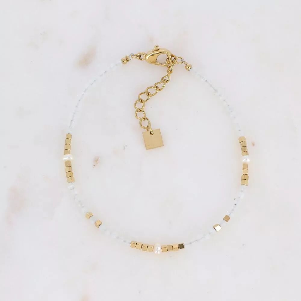 Bracelet sur fil orné de pierres naturelles, de perles d’eau douce et de perles en acier inoxydable.