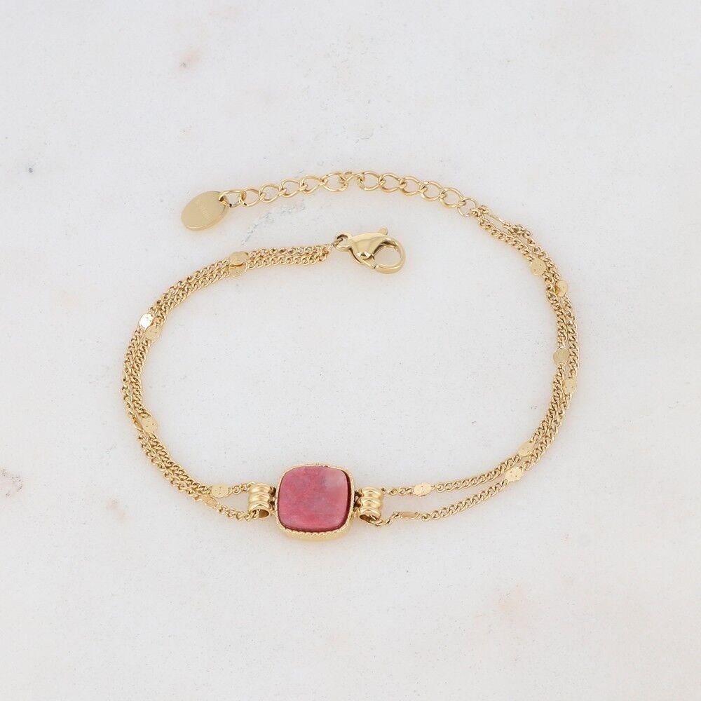 Bracelet en acier inoxydable composé d’un pendentif carré en pierre naturelle.
