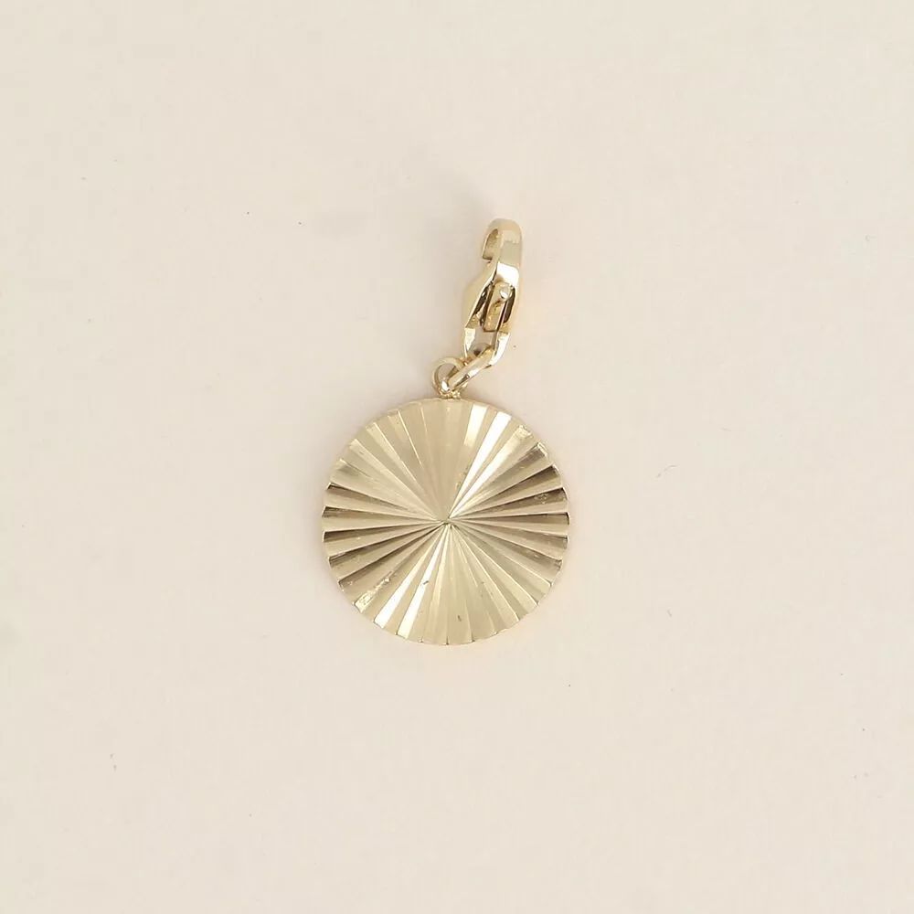 Charm en acier inoxydable composé d’un pendentif rond aux lignes diamantées.