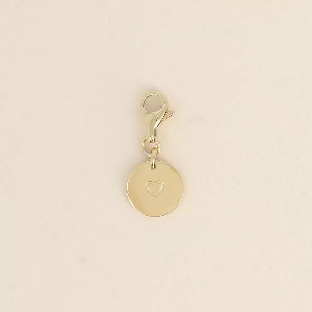 Charm en acier inoxydable composé d’un pendentif rond avec un coeur gravé.