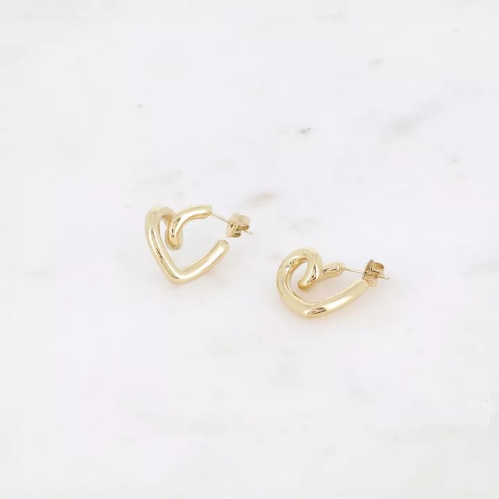 Boucles d’oreilles type créoles en acier inoxydable composées d’un anneau courbé en forme de coeur.