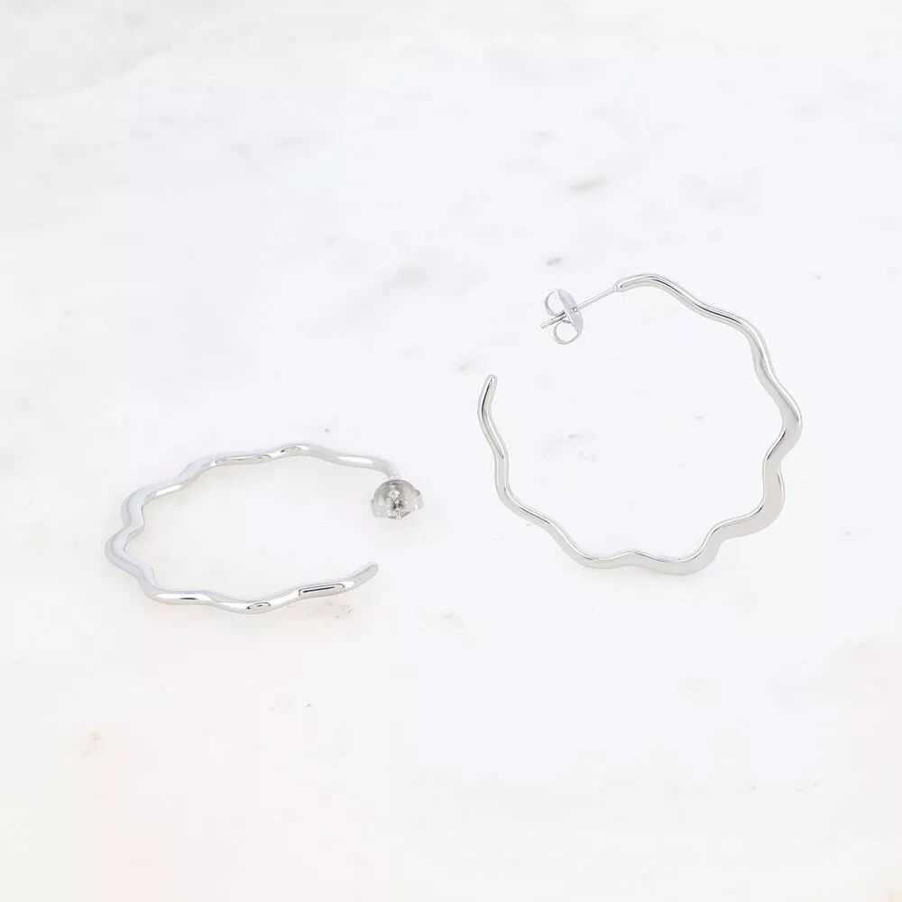 Boucles d’oreilles type créoles fines en acier inoxydable composées d’un anneau fin ondulé.