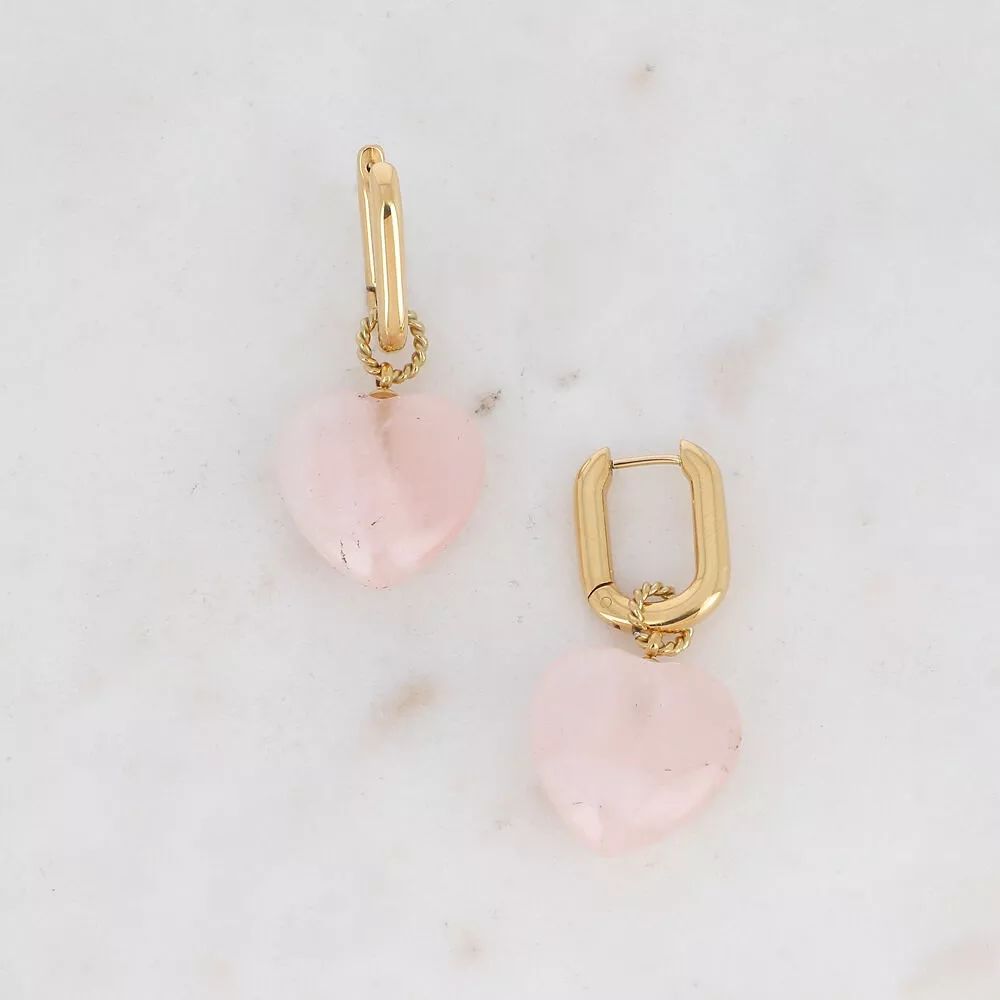 Boucles d’oreilles type créoles avec fermoir à charnière en acier inoxydable composées d’un coeur en pierre naturelle.