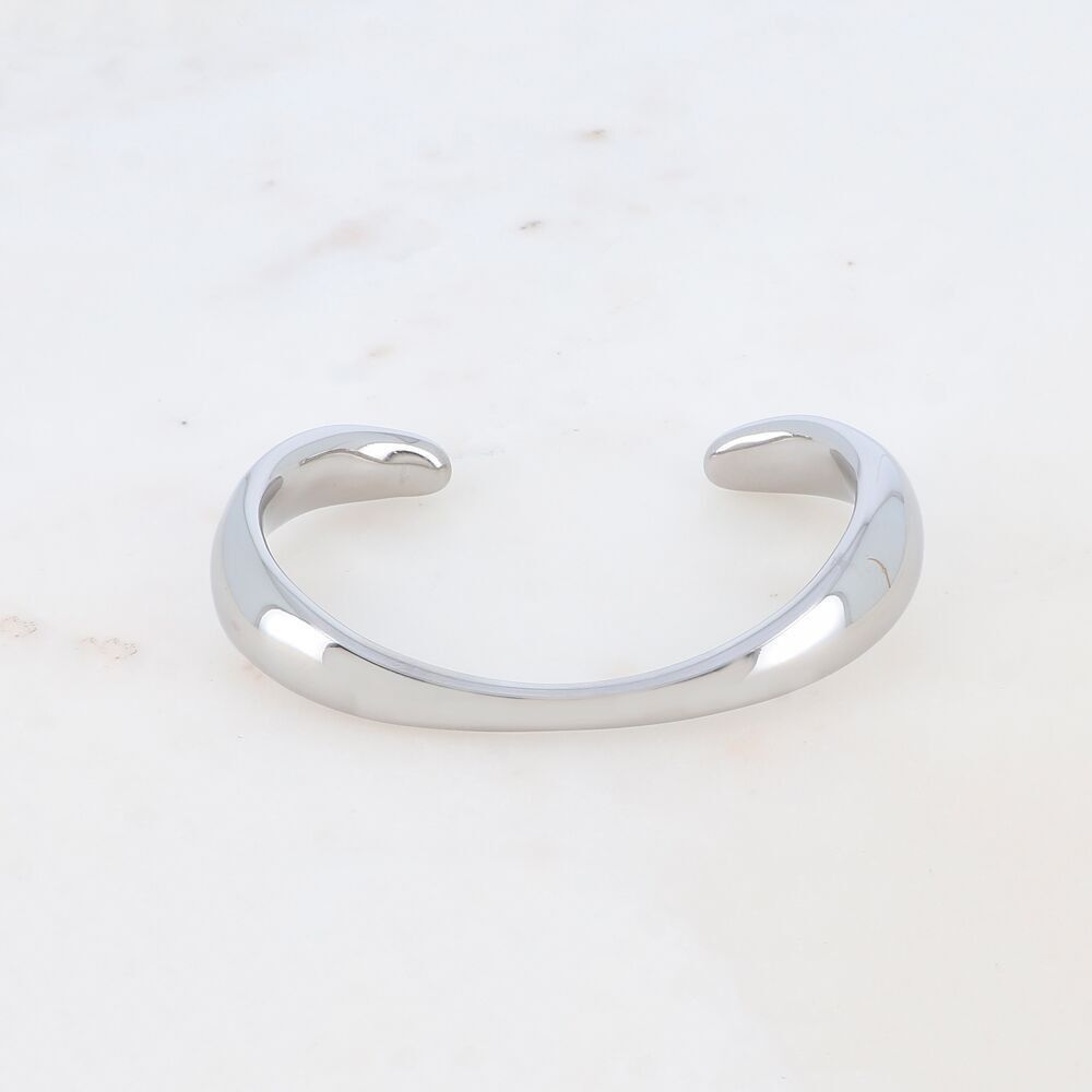 Bracelet type jonc en acier inoxydable composé d’un effet ondulé.