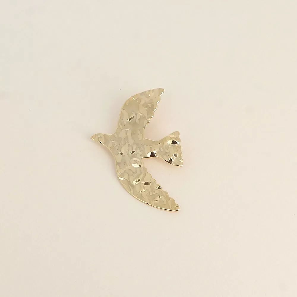 Broche type pin’s en acier inoxydable composé d’un motif oiseau texturé.